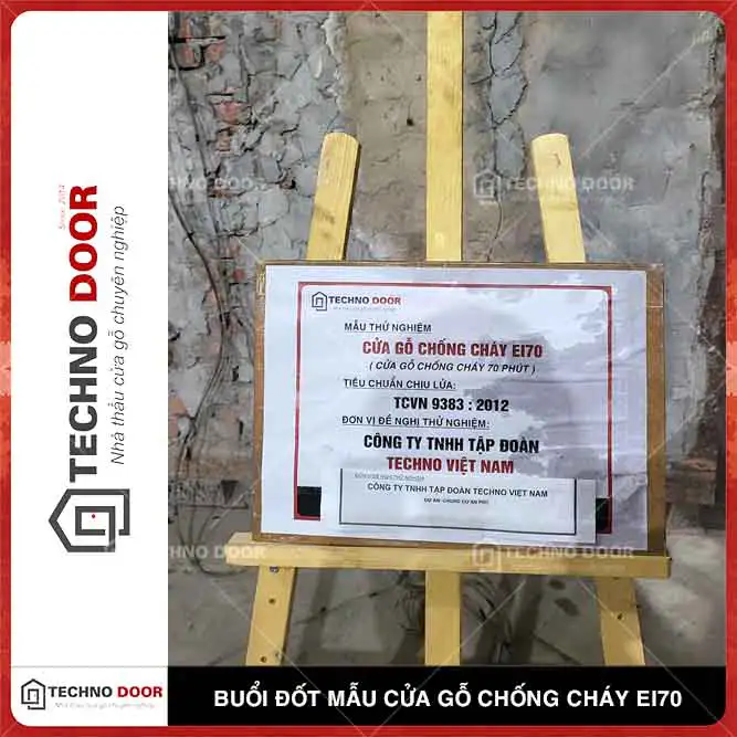 Buổi đốt mẫu thử nghiệm Cửa chống cháy Gỗ công nghiệp EI70 của Technodoor