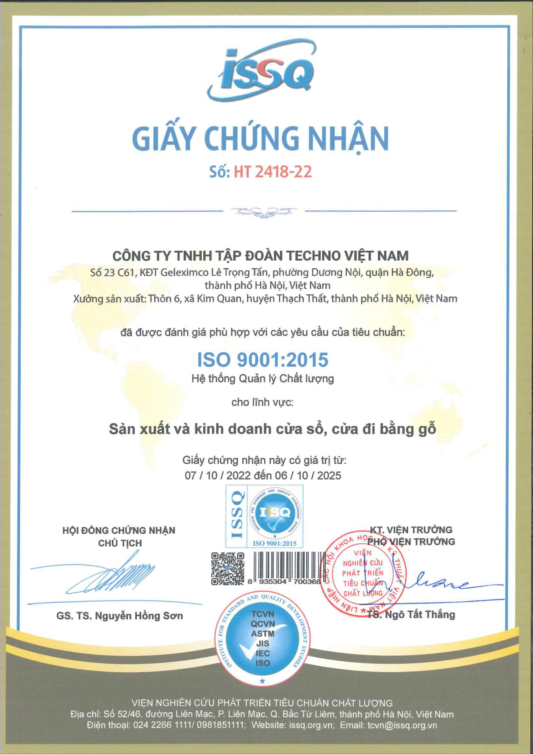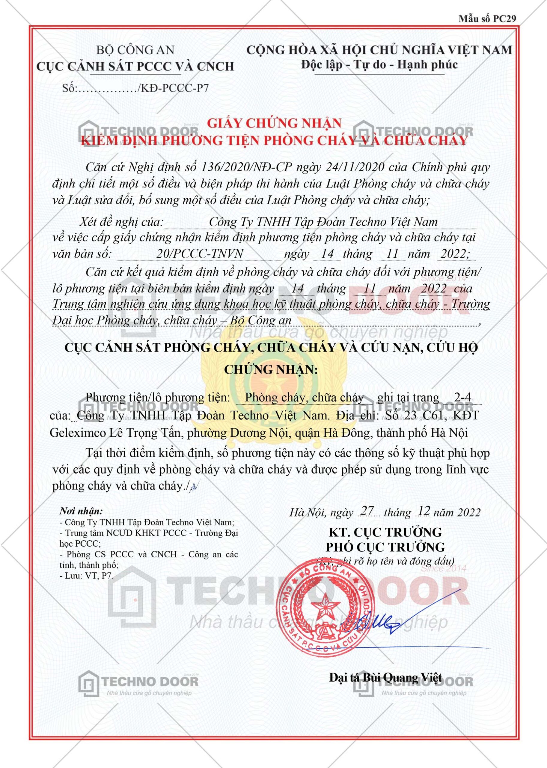 GIẤY TỜ - CHỨNG CHỈ TECHNO DOOR
