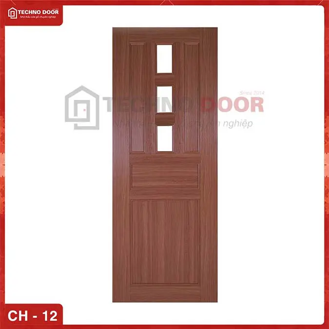Cửa nhựa Ghép thanh CH-12 là mẫu cửa nhựa ghép thanh trơn với màu cánh gián sẫm, vân gỗ nhẹ nhàng, thiết kế các đố cửa đối xứng bắt mắt. Mẫu cửa này được soi thêm 3 ô kính trong hoặc mờ, kết hợp với các đố cửa tạo nên một sự hài hòa tổng thể, phù hợp với rất nhiều vị trí, ứng dụng thực tế cần quan sát hai chiều.